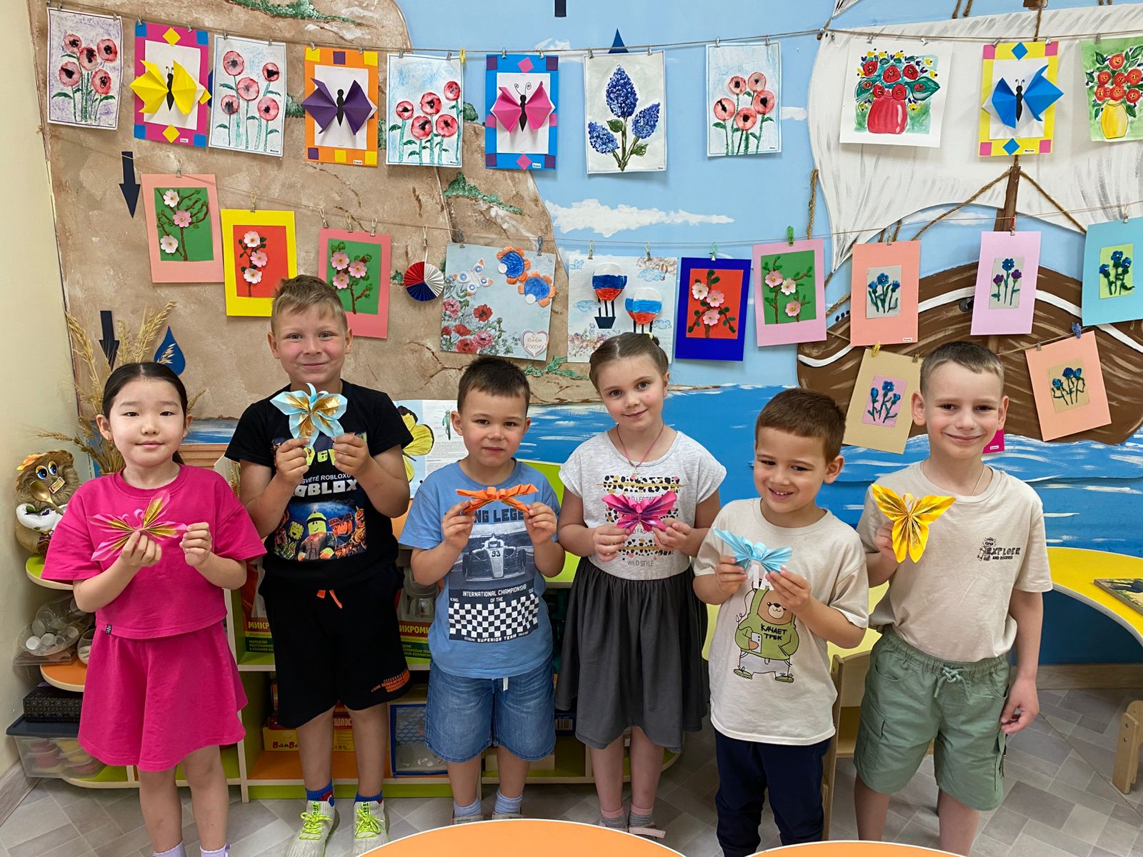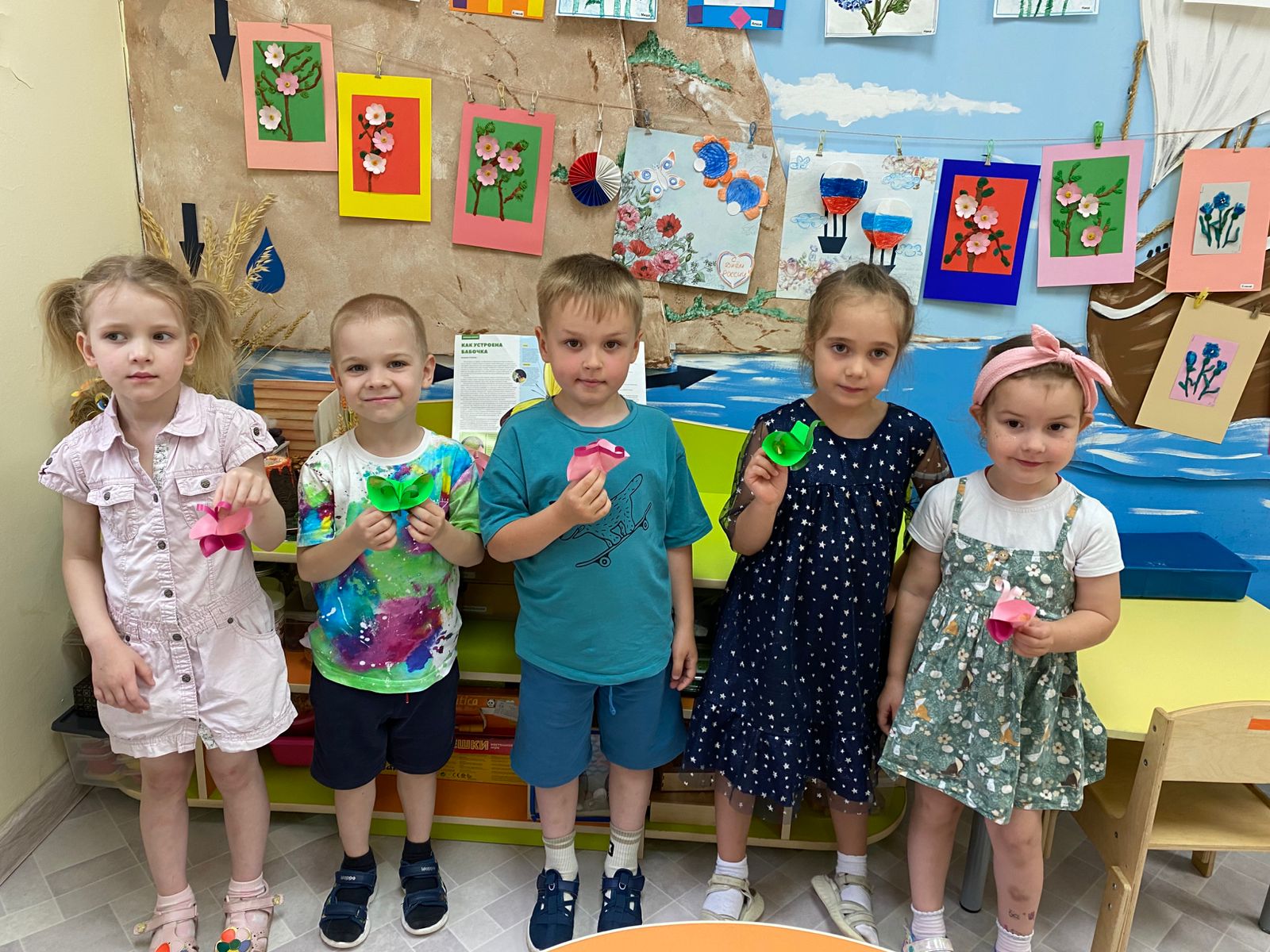 Рассказали детям о волшебных превращениях бабочки, об удивительных фактах из их жизни, показали презентацию "Удивительный мир бабочек", младшие дети изобразили бабочек в нетрадиционной технике рисования с помощью хозяйственной губки, а старшие воспитанники для изготовления этих прекрасных насекомых использовали технику оригами. Провели подвижные игры " Бабочки и жук", " Лети на свой цветок", "Поймай бабочку сачком".