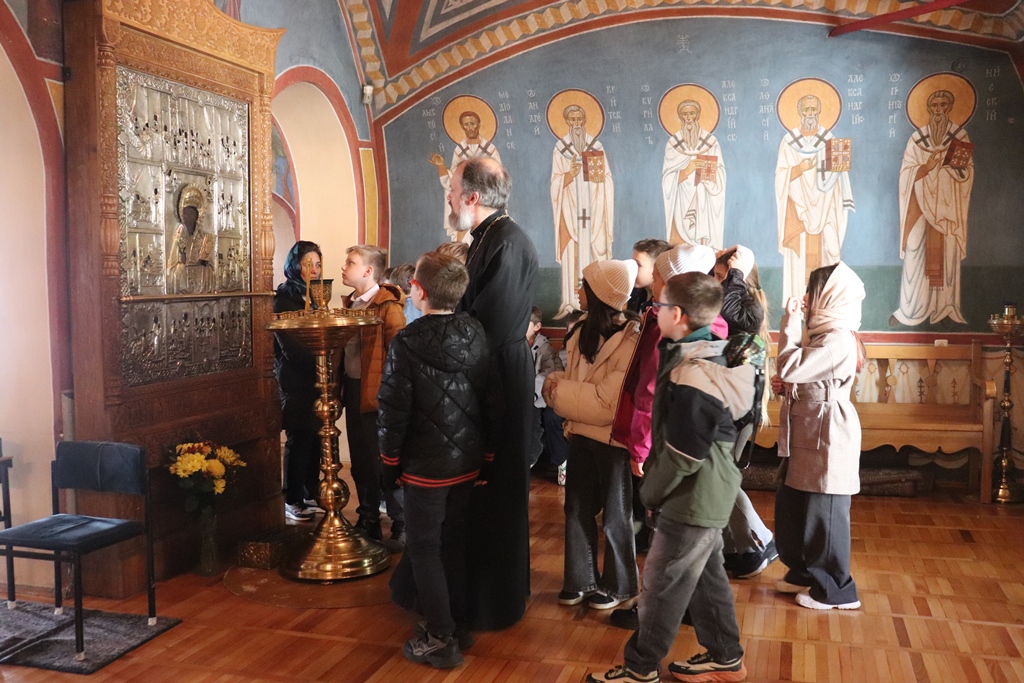 Мы посетили Школу Иконописи, где ребятам рассказали об искусстве иконописи, которое пришло на русские земли из Византии после Крещения Руси.