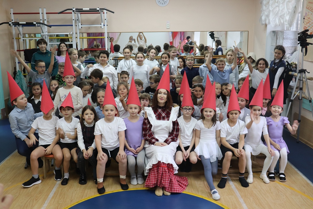 Благодаря музыкальному спектаклю воспитанники детского сада и ученики Школы «Морозко» отправились в увлекательное путешествие вместе со сказочными героями и гномиком Мо, которые ожили со страниц этой книги.