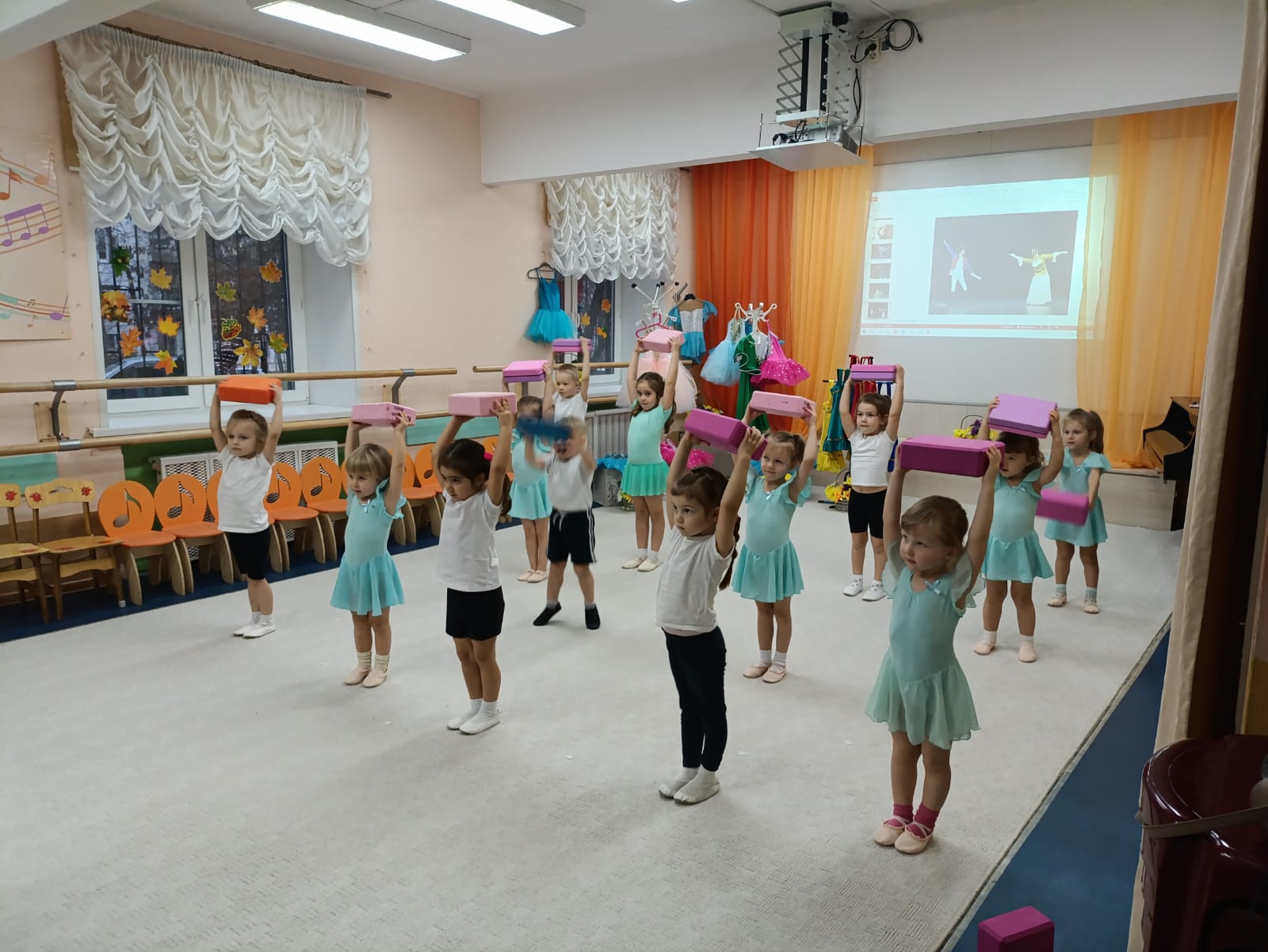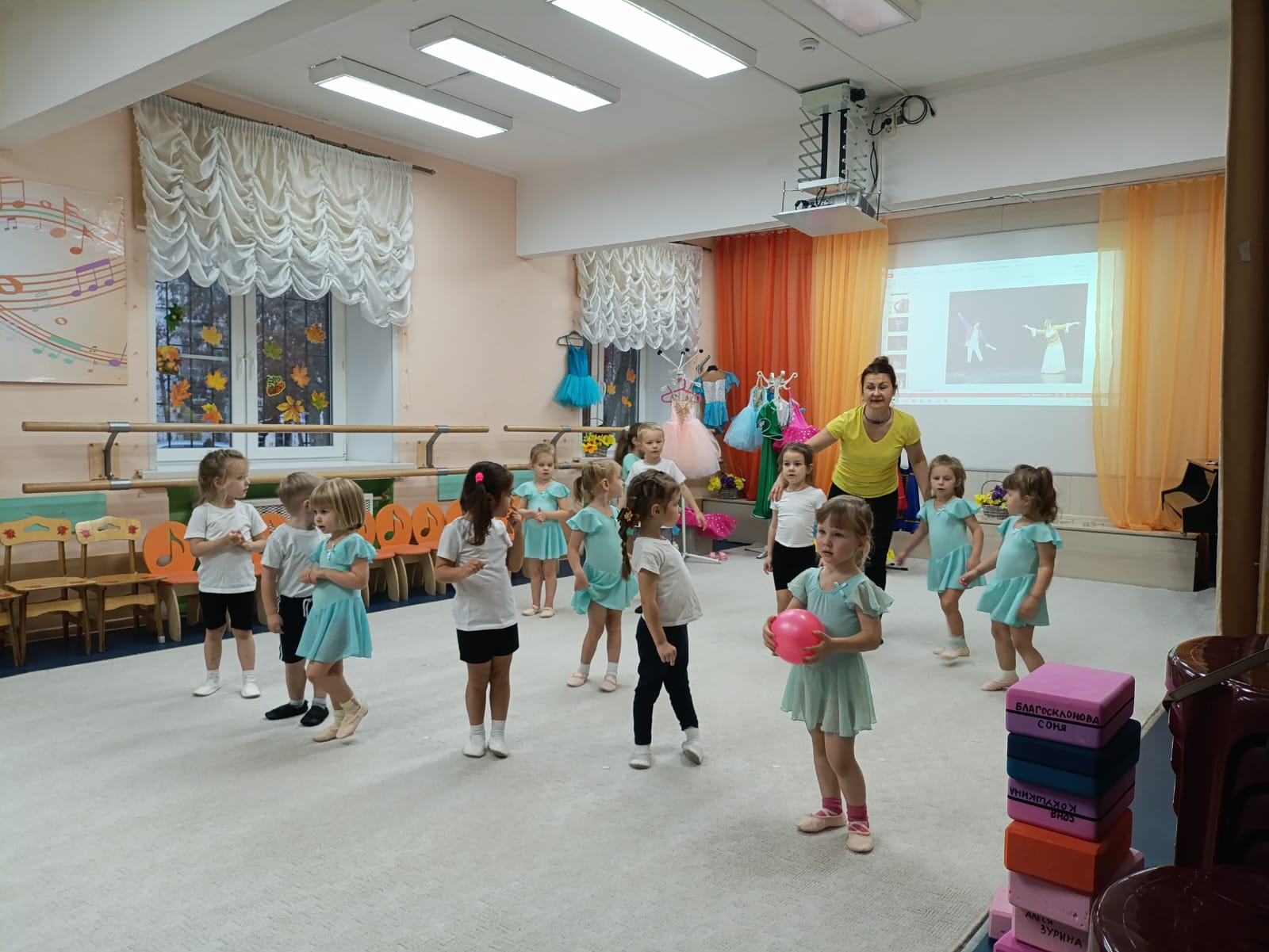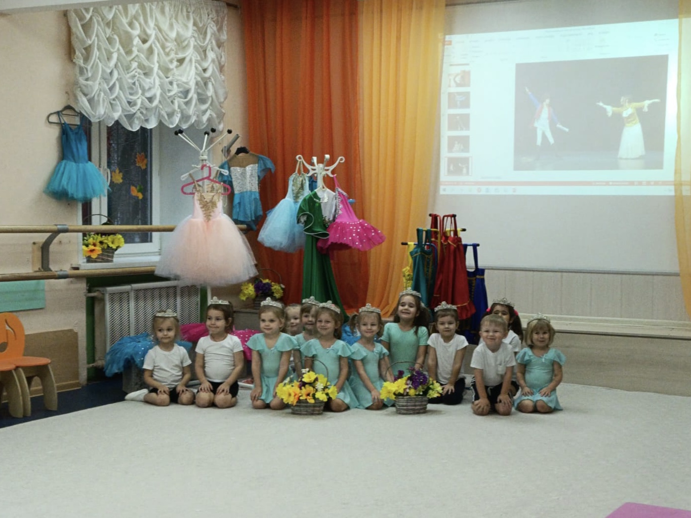 И, конечно, творческий процесс связан с прекрасной музыкой, которой звучало на мастер-классе очень много. Музыка помогает настроить струны души на прекрасное и уйти в мир творчества с головой! Разнообразие костюмов и реквизита, чудесная музыка, балетная разминка и познавательная видео презентация помогли ребятам представить себя в роли артистов балета. После разминки юные феи вышли с корзинами цветов на воображаемую сцену. Педагог подготовил видео презентацию, благодаря которой познакомил ребят с трудом артистов, выбравших хореографию и классический балет своей профессией. Несомненно, это осталось в памяти детей, как яркие, позитивные впечатления. Мы увидели, что после таких волнительных эмоций дети с большим желанием хотят заниматься хореографией.