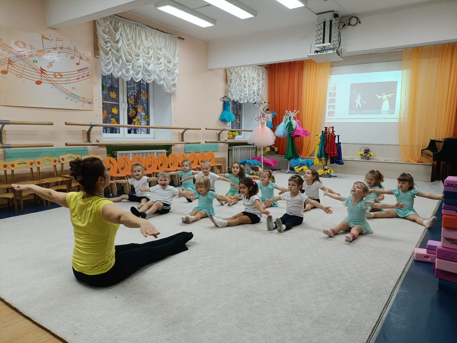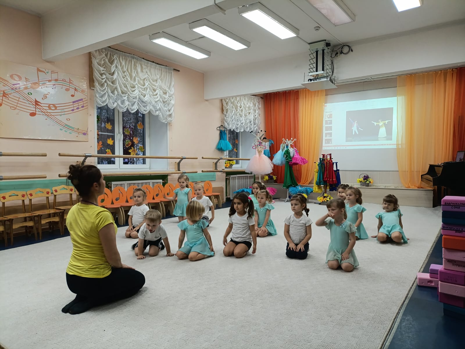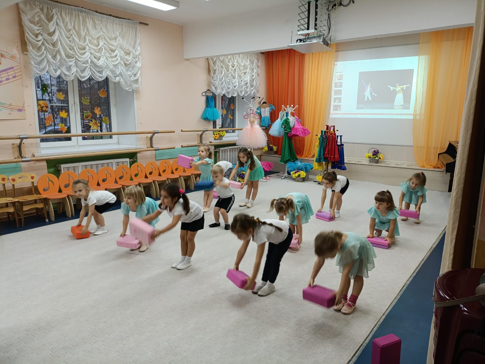 И, конечно, творческий процесс связан с прекрасной музыкой, которой звучало на мастер-классе очень много. Музыка помогает настроить струны души на прекрасное и уйти в мир творчества с головой! Разнообразие костюмов и реквизита, чудесная музыка, балетная разминка и познавательная видео презентация помогли ребятам представить себя в роли артистов балета. После разминки юные феи вышли с корзинами цветов на воображаемую сцену. Педагог подготовил видео презентацию, благодаря которой познакомил ребят с трудом артистов, выбравших хореографию и классический балет своей профессией. Несомненно, это осталось в памяти детей, как яркие, позитивные впечатления. Мы увидели, что после таких волнительных эмоций дети с большим желанием хотят заниматься хореографией.