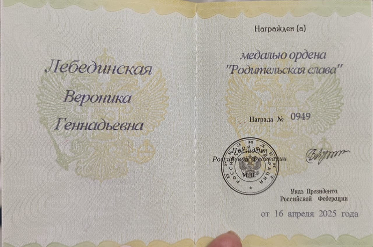 Преподавателю хореографии нашей Школы "МОРОЗКО", руководителю студии классического танца "МОЛОДОЙ БАЛЕТ МОСКВЫ" Лебединской Веронике Геннадьевне 2-го декабря 2025 года мэром города Москвы была вручена Государственная награда - орден "РОДИТЕЛЬСКАЯ СЛАВА".