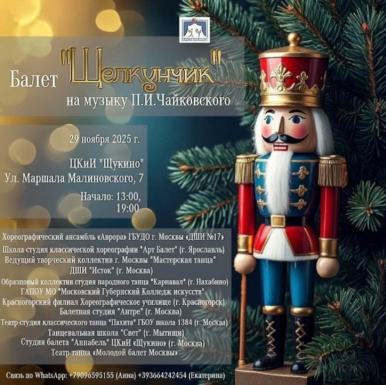 29 ноября 2025 года Творческий коллектив Школы "МОРОЗКО" - Театр танца "Молодой балет Москвы" (группа ЗЕФИР; Руководитель - Лебединская Вероника Геннадьевна) принял участие в балете "Щелкунчик" на музыку П.И. Чайковского. Спектакль состоялся в ЦКиИ "Щукино", в рамках Международного проекта "Дети на сцене".
